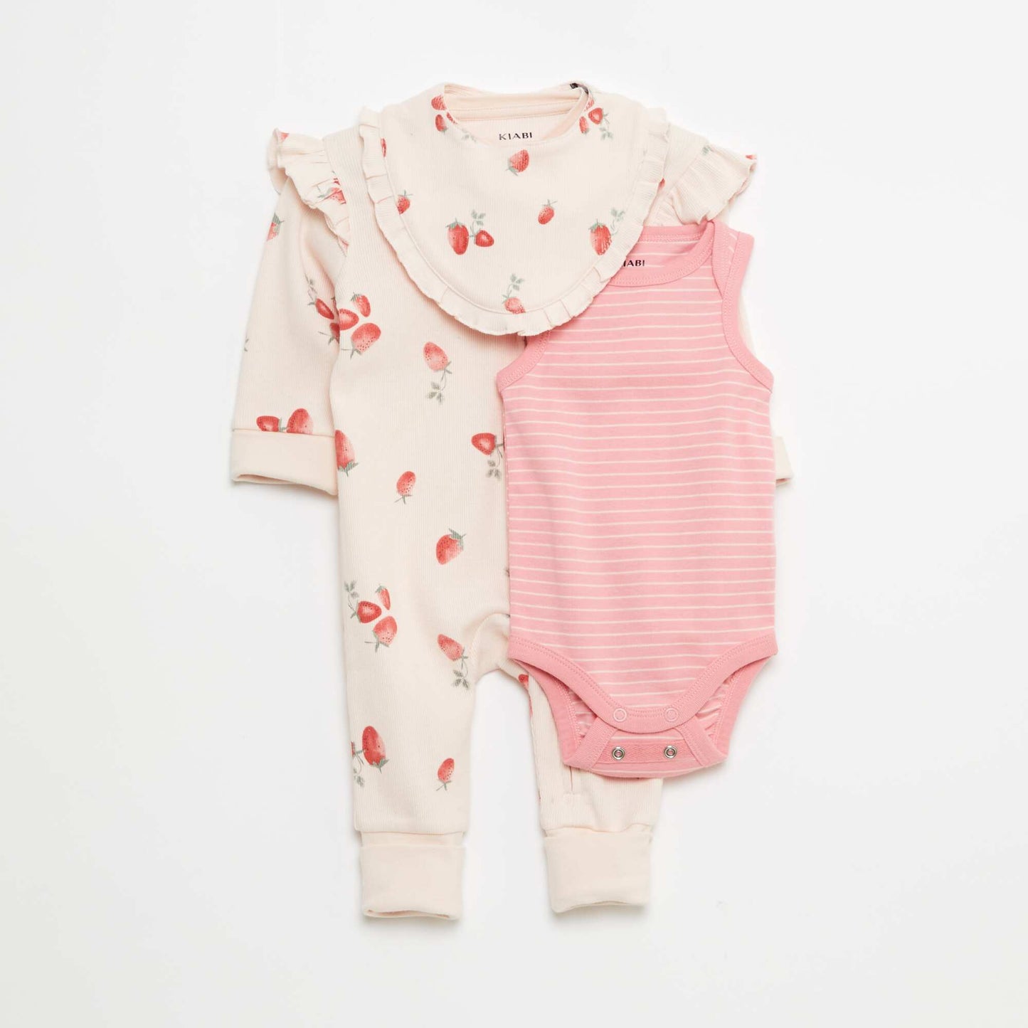 Sleepsuit bib and bodysuit set - 3-piece set PINK